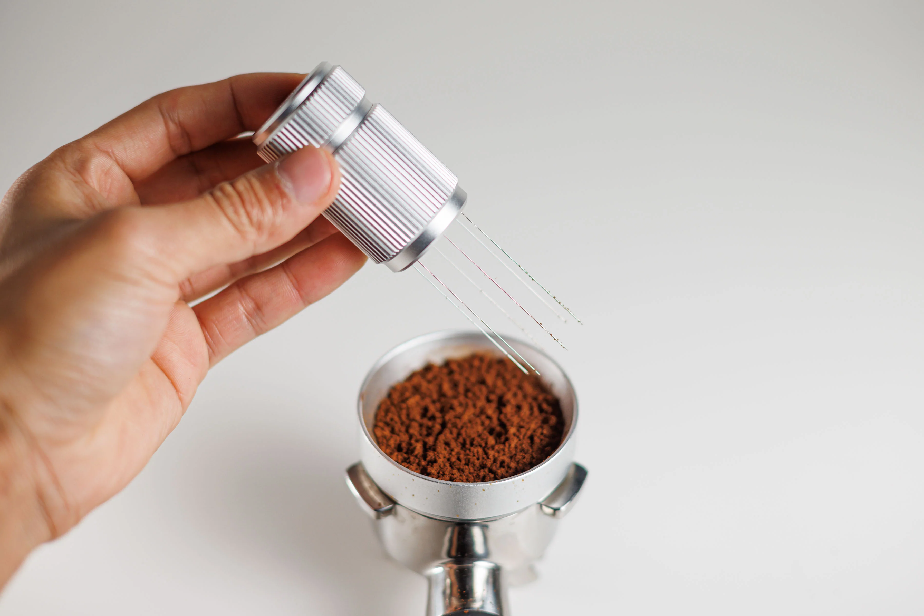 A WDT Tool (Weiss Distribution Technique) is used for distributing and declumping coffee grinds in an espresso portafilter so that water can flow through more evenly and thus improving flavour. For an in-depth guide on WDT Tools, read here.